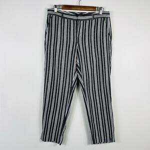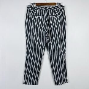 Banana Republic Size 6 Avery Striped Linen Blend Tailored Ankle Pants Black