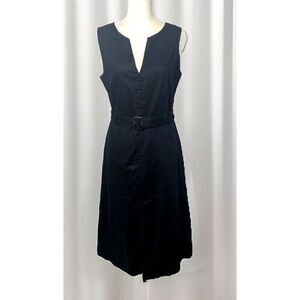 Banana Republic Size 6 Dress Black Linen Blend Cotton Spandex Midi Fit Belted