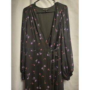 Banana Republic Size 8 Floral Maxi Wrap Dress Hi-low Long Sleeve Dark Fairy