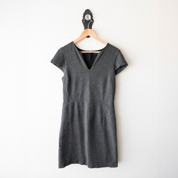 Banana Republic Size 8 Gray Cap Sleeve Lined Bodycon Sheath V-Neck Dress