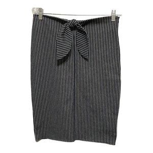 Gently used with no flaws Size 8 Grey white striped print Side zip Bow knot detail at waist A cute casual career skirt Approximate Measurements: Waist 15 inches Length 24 inches APRTU