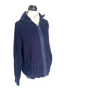 Banana Republic Blue Ribbed Knit Full Zip Sweater Size Large Mens Grandpa Core