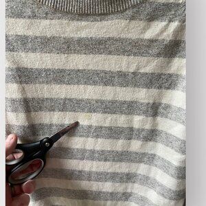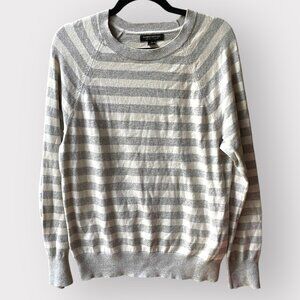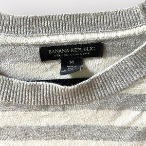 Banana Republic Size M Gray Beige Crewneck Striped Cashmere Blend Sweater