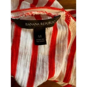 Red and white striped, loose fit, scoop neck cotton-blend top with cuffed sleeves.