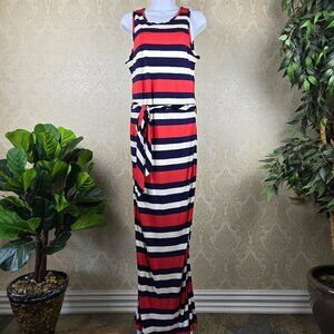 Banana Republic Size Small Slim Cut Maxi Dress Red White Blue Stripes Sleeveless