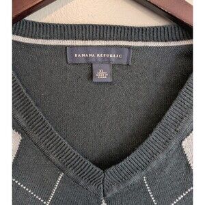 V-neck pullover argyle sweater vest from Banana Republic. Made of 85% silk, 10% cotton and 5% cashmere. Stretch hem. Size men's extra large. Excellent pre-owned condition. It is about 28" long and 20" armpit to armpit. Buy with confidence. Your satisfaction is my priority. Ships fast and comes from a smoke-free home.