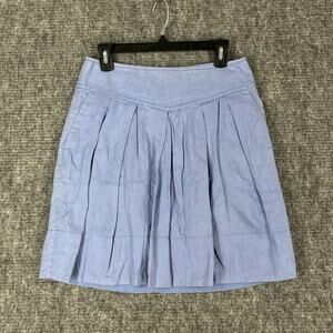 Banana Republic Skirt Womens 2 Linen Pleated Short A Line Lined Zip Bottoms Blue
