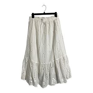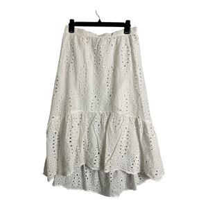 Banana Republic Skirt Women's Small White Eyelet Cotton Midi High-Low Hem Small