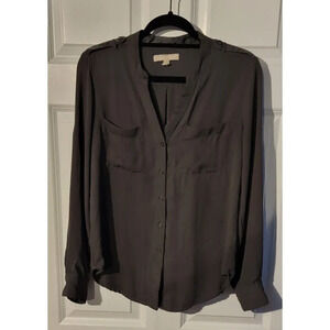 Banana Republic Slate Silk Blouse Women's Size Small Long Sleeve Button-Up