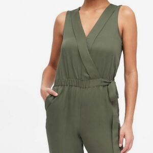 Banana Republic Sleeveless Army Green Surplice Wrap Front Jumpsuit Pantsuit Sz 8