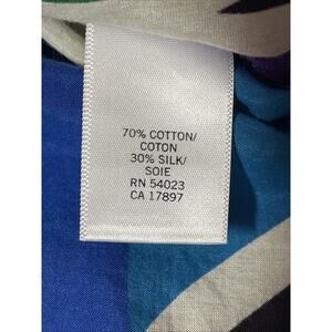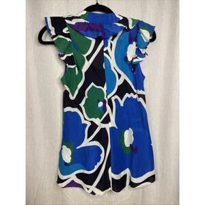Measures 15” P2P and 23” long approximately. The Banana Republic Sleeveless Blouse in a Silk Blend is a stylish and versatile top for women. With a flattering V-neckline and cap sleeve design, this blouse is perfect for both casual and formal occasions. The multicolor silk blend material adds a touch of luxury to your wardrobe, making it a must-have piece for any fashion-forward individual looking for a chic and sophisticated option.