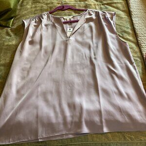 Add a touch of elegance to your wardrobe with this brand-new Banana Republic blouse in a soft lavender hue. Featuring a flattering V-neckline and delicate pleating at the shoulders, this sleeveless top is perfect for layering under a blazer or wearing solo on warm days. Lightweight and flowy, it offers both comfort and sophistication. Style tip: Pair it with white trousers or dark denim for a polished, versatile look that transitions from day to night.