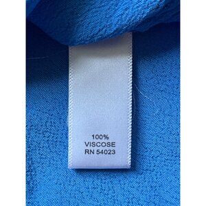 A chic, blue Banana Republic sleeveless blouse for petite women. Perfect for professional settings with its gold button accents and piping detail. Size 0. Material not specified.