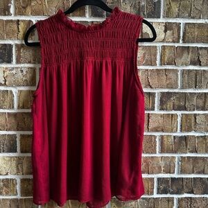 Chic sleeveless blouse in deep burgundy. Perfect for versatile styling.