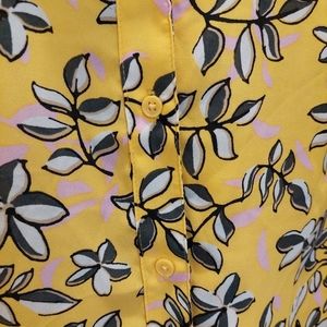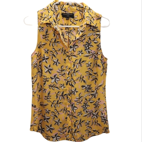 Yellow and floral Banana Republic sleeveless button up blouse.