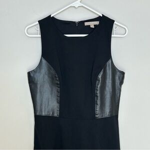 Banana Republic Sleeveless Fit & Flare Black Dress, Faux Leather Inserts, Size 8