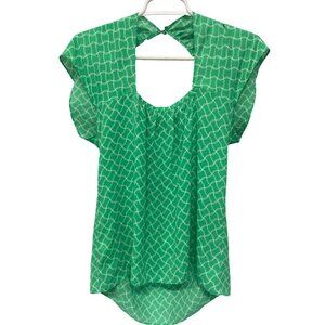This sleeveless blouse from Banana Republic offers a polished and modern look. Featuring an elegant keyhole back detail and a geometric print, it ensures a lightweight and breathable fit for professional or casual settings.