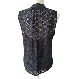 Banana Republic Sleeveless Lace Top Built in Neck Tie Women's Med Black Lined