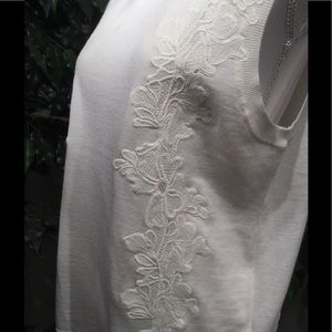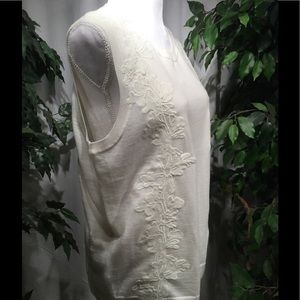 Banana Republic 100% Merino Wool Sleeveless lite sweater. Very pretty Floral design running down the sides of the sweater front and back