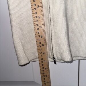 Classic and minimalist Banana Republic Sleeveless Ribbed Knit Tunic in a soft ivory/cream color. Clean, modern look with a unique side zipper detail.