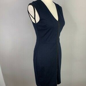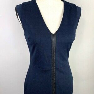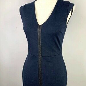 Banana Republic Sleeveless Sheath Dress Women O Navy Faux Leather Front Detail