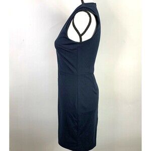 Banana Republic Outlet Sleeveless Sheath Dress Women O Navy Faux Leather detail