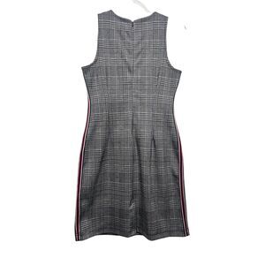 Banana Republic Sleeveless Sheath Dress in Navy Side Stripe Houndstooth Plaid