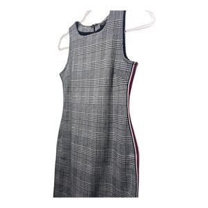 This Banana Republic women’s sleeveless sheath dress in size 0 features a classic navy houndstooth print with sporty contrast side stripes. Elegant with a modern twist!