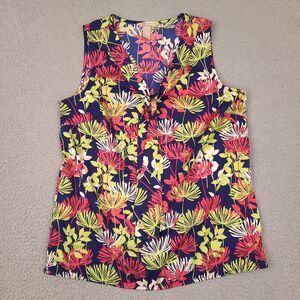 Banana Republic Sleeveless Top Womens Medium Blue Red Green Floral V Neck Tank