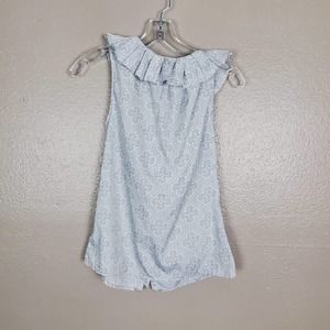 Banana Republic Sleeveless White/Silver Button Up Blouse w/Ruffles and Tie PXS