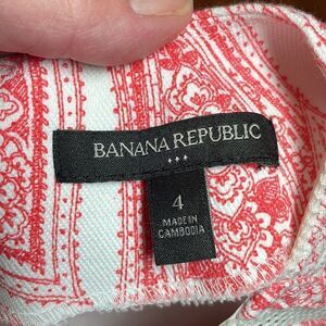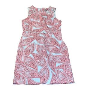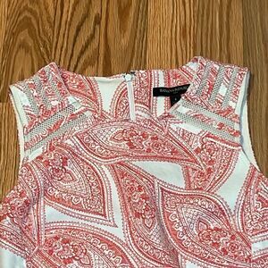 Banana Republic Sleeveless Dress, leaf pattern orange on white, Stretchy, 4