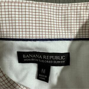Banana Republic Slim Fit Tan & White Plaid Long Sleeve Button Down Shirt Size M