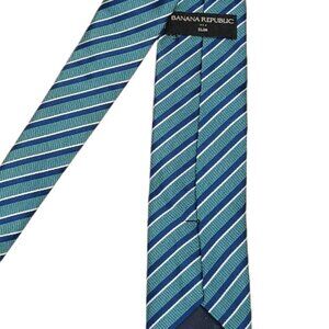 Banana Republic Slim Repp Tie Men’s 62” Green Blue Ribbon Stripe Preppy New