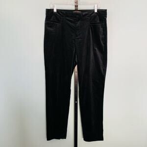 A winter wardrobe staple! Black velvet pants that can go to work, out for evening or to holiday parties. Front pockets, zipper fly with two metal hooks and inner button closure. In excellent condition