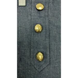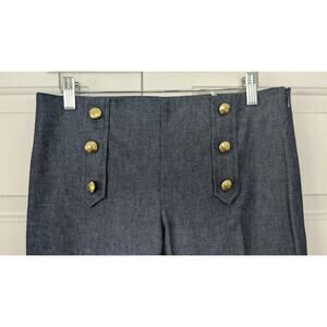 Excellent condition! Size 4. Classic gold decorative buttons. Side zipper closure. Straight leg. Cotton rayon spandex blend. Approximate measurements: