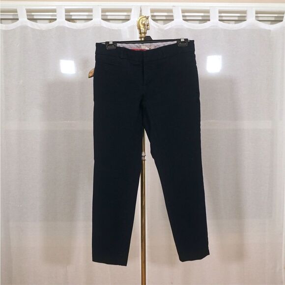 - Classic dark navy blue cotton stretch tapered leg ankle midrise slacks pants by Banana Republic