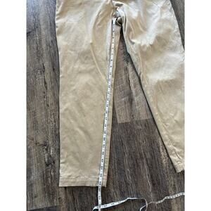 These are Banana Republic Sloan pants in a classic khaki color, designed for a sleek and modern fit. They are made from a comfortable and durable fabric, ideal for both casual and professional settings. They are a size 10 and in excellent used condition.