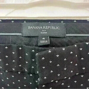 These ladies, Banana Republic, black pattern pants are a size 4, and are in great preowned condition. Please see photos as they are part of the description and show the wear and condition of the pants. Questions? Leave a comment below!