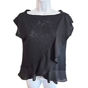 Banana Republic Small Black Ruffle Blouse Sheer Flowy Elegant Top Work Evening