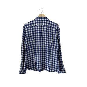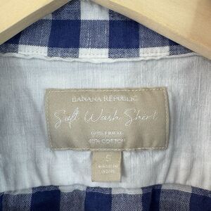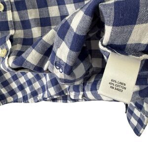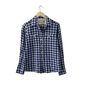 Banana Republic Small Linen Cotton Button Shirt Gingham Plaid Womens Blue & White Long Sleeve Beautiful Quality Lightweight Classic