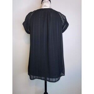 Banana Republic Small Pleated Scoop Neck Short Sleeve Striped Black Blouse/Top