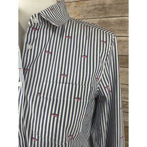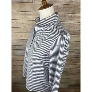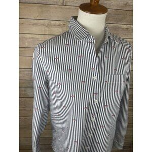 Banana Republic Small Quinn Boy Fit Button Up Striped Lip Print Blouse Blue Pink