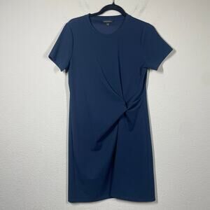 Banana Republic Small Side Twisted Shift Dress Blue Crew Neck Short Sleeves