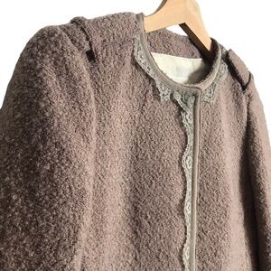 Banana Republic Small Taupe Dusty Pink Wool Blend Jacket with Lace Trim