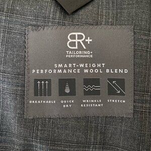 Banana Republic Smart-Weight Performance Wool Blend Slim Fit Grey Check Sport Jacket. Tagged 40S but is a slim fit and measures more accurately as 38S.