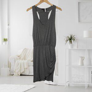 Banana Republic Snitty Envelope Ruched Racerback Tank Dress Medium Petite Elastic Waist Stretch Viscose Grey