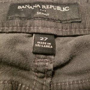 These corduroy jeans by Banana Republic are a fine wale--and nice and soft. Nice dark grey color. They have a little stretch, very flattering.