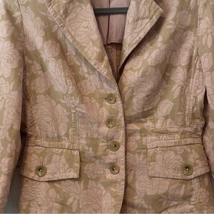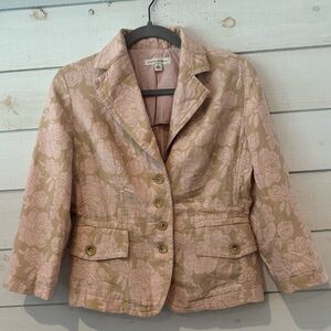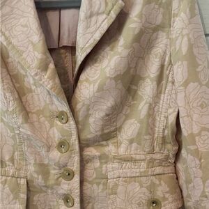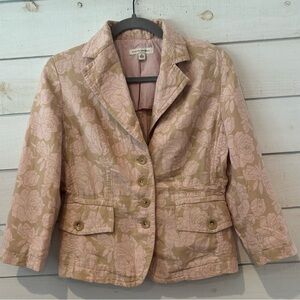 Banana Republic Soft Pink Rose Floral/Khaki Cotton/Linen Button Blazer Size: 6