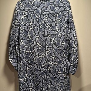 Banana Republic Soft Relaxed Shift Dress Long Sleeve Rayon Blue Python Snake 14