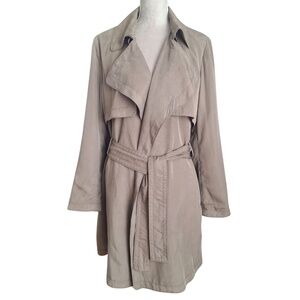Banana Republic Soft Trench Coat L Taupe Belted Lightweight Jacket Tencel